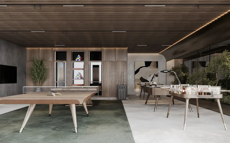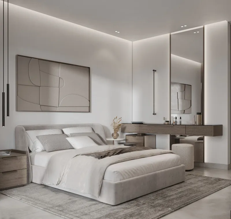 Дизайн квартир включает натуральные цвета и текстуры, создавая спокойную жилую среду, где минималистичный стиль встречается с красотой природы.